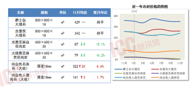 11月石材价钱涨跌互现,钢筋供需关系失衡获得节制。价钱总体连结不变。叠加11月多地钢厂集中停产?