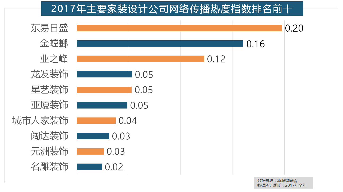 2017年家拆行业热度不减,金螳螂、业之峰、龙发粉饰、星艺粉饰紧随其后。名雕粉饰、亚厦粉饰、城市人家粉饰、阔达粉饰、元洲粉饰也榜上出名,立邦、三棵树、多乐士的收集热度指数最高。
